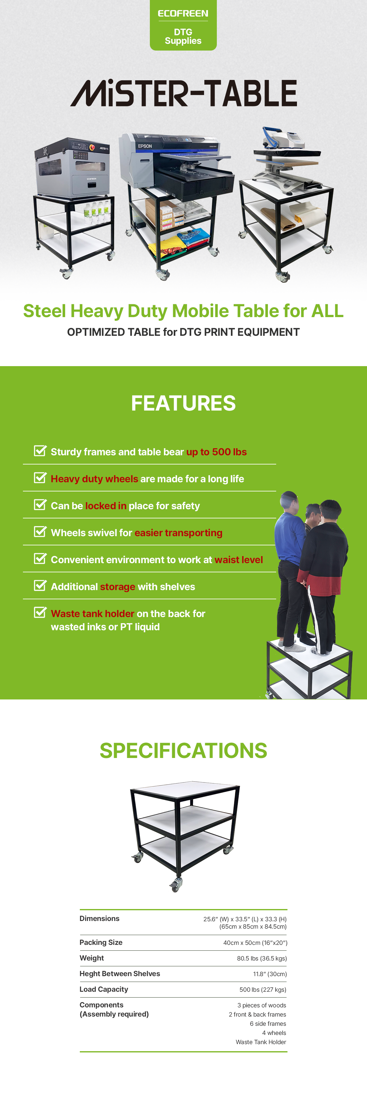OPTIMIZED TABLE for DTG PRINT EQUIPMENT