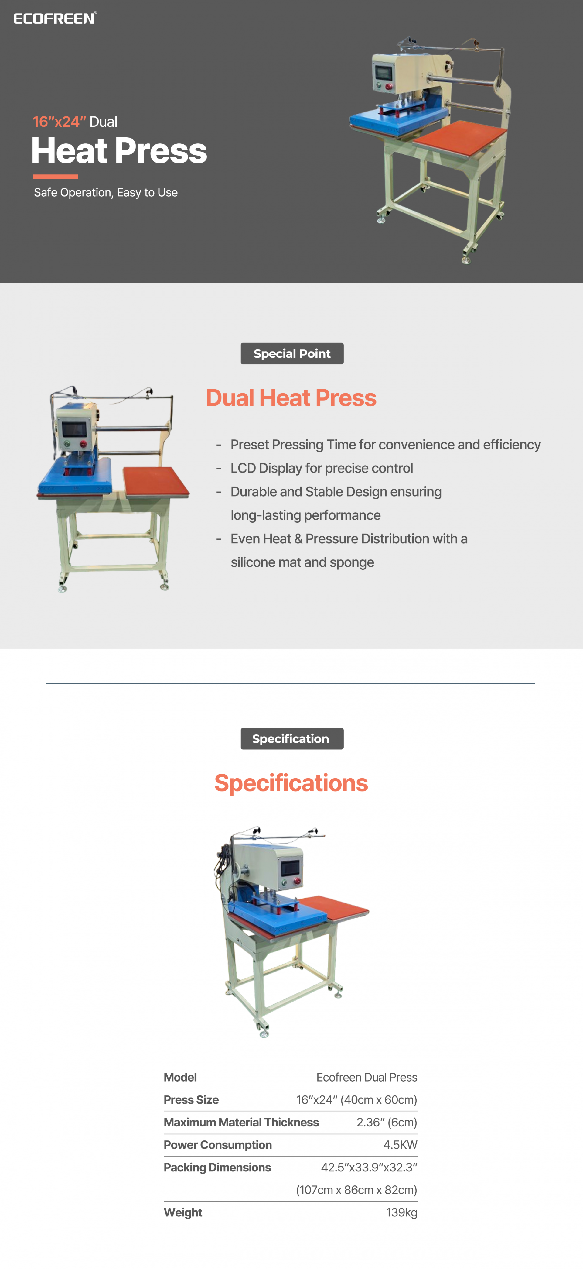 Ecofreen Dual Heat Press 16"x24"