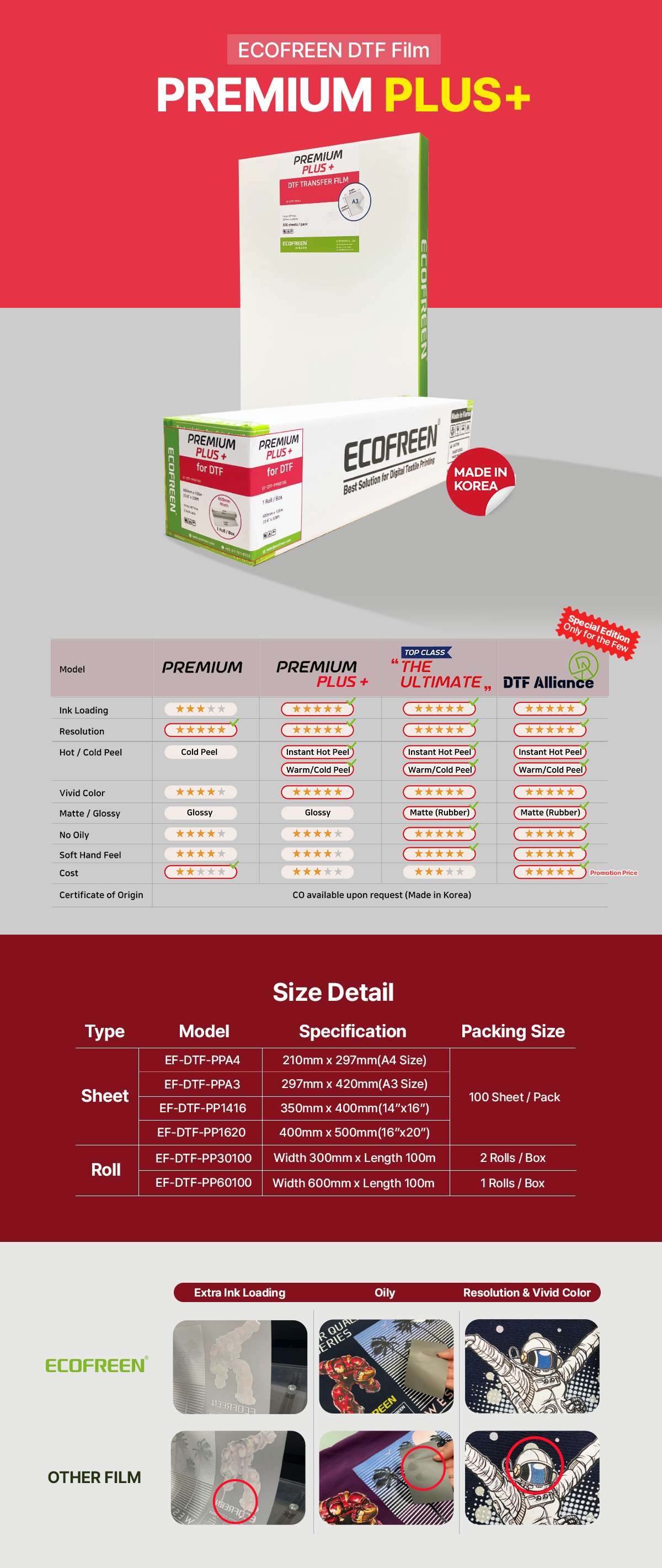 Ecofreen DTF Film - Premium Plus (Rolls)