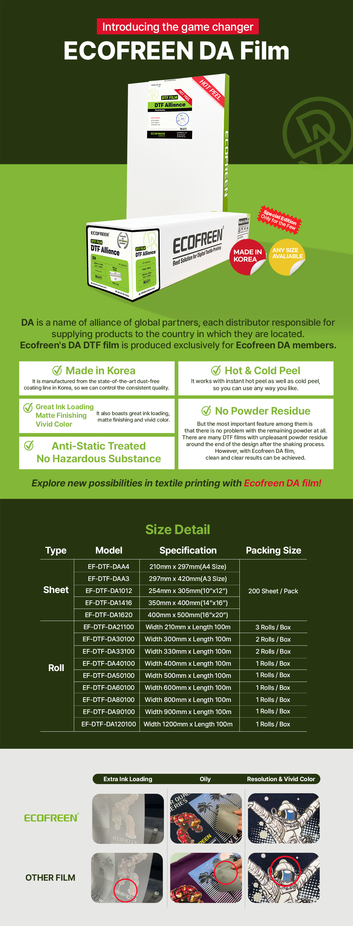 Ecofreen DTF Film - DTF Alliance (Rolls)